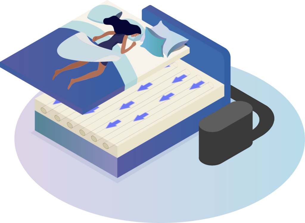 Dat is en natuurlijke koeltechnologie die jou meer dan 12 uur lang comfortabel koel houdt. Door gebruik te maken van eenvoudige fysica, verwijdert deze methode enkel overtollig warmte uit jouw matras. Dat betekent dat je uur na uur op de juiste temperatuur kunt slapen.